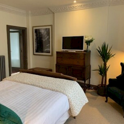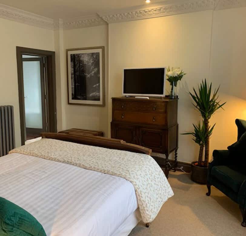 Individually designed stylish ‘homely’ bedroom equipped with a 5ft four-poster queen size double bed and en-suite bathroom with a bath and shower.