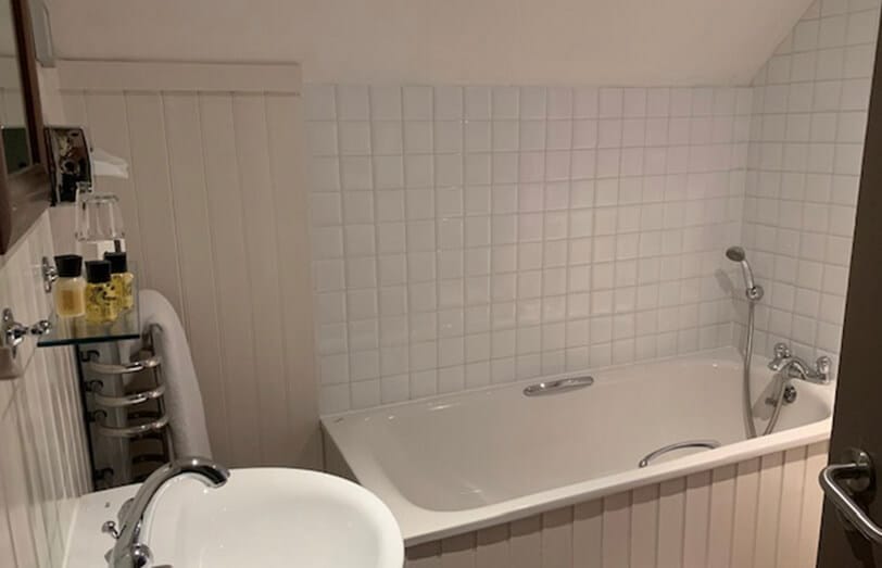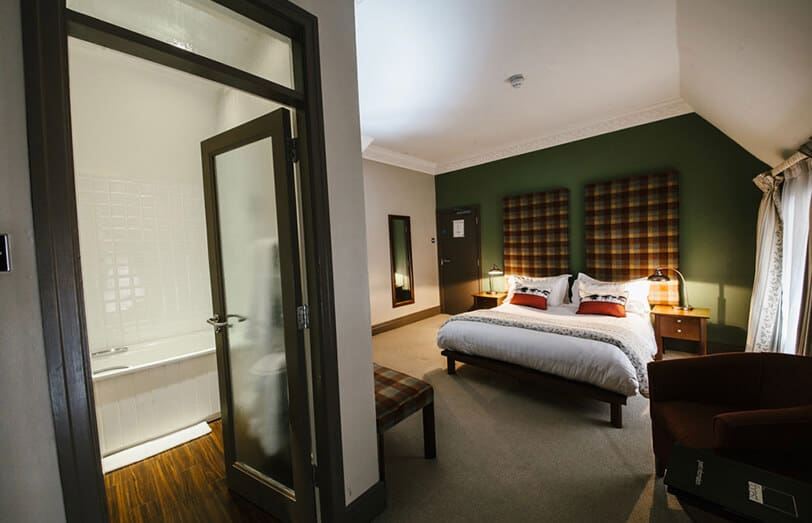 Individually designed bedroom with a 5ft queen size double bed and en-suite bathroom with a bath and shower.